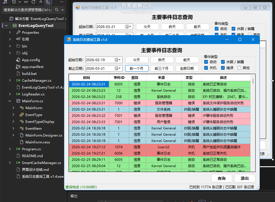 "當前權限不足,只能讀取部分事件日志。建議以管理員身份運行程序以獲得完整功能。";