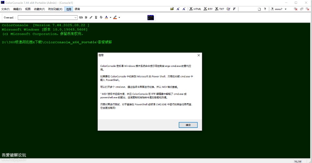 一、工具簡介:ColorConsole 是一款經典、輕量、免費的 Windows CMD 命令提示符增強 / 替代工具,由 Nenad Hrg 開發,主打彩色界面、多標簽、命令收藏、結果導出,完全兼容原生 CMD。