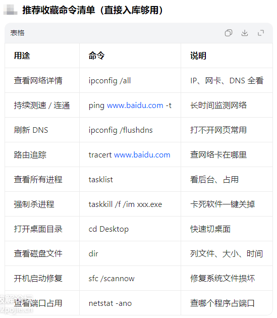 保存 ping、ipconfig、dir 等常用命令,一鍵執行。