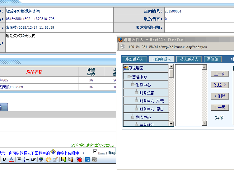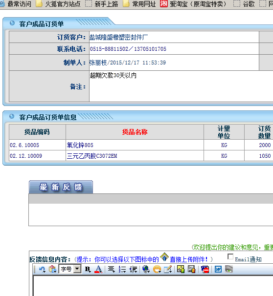 銷售訂單跟蹤,對于已審核的銷售訂單,如果有合同、發貨或其他問題需要說明或跟進的,可以進行反饋,然后email給相關人員,相關人員可以收到信息。