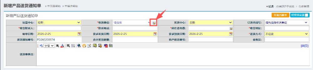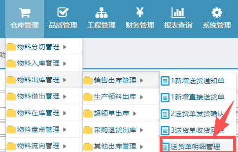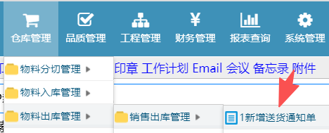 操作步驟:倉庫管理——物料出庫管理——銷售出庫管理——新增送貨通知單;
