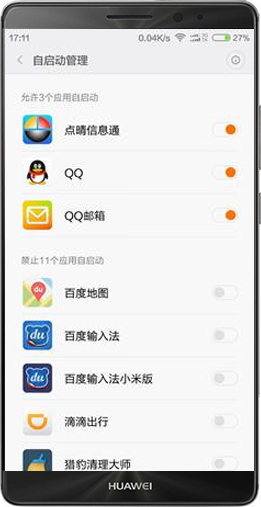 5.1、打開設(shè)置——點(diǎn)擊權(quán)限管理 5.2、進(jìn)入頁面后點(diǎn)擊“自動(dòng)啟動(dòng)管理”5.3、進(jìn)入頁面,選擇“點(diǎn)晴信息通”,設(shè)置啟動(dòng),如下圖: