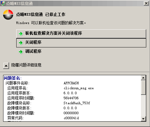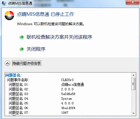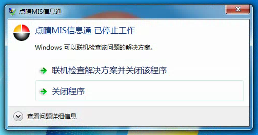 點(diǎn)晴MIS信息通PC客戶端安裝后點(diǎn)擊登錄執(zhí)行時(shí)提示已停止工作,要如何解決?