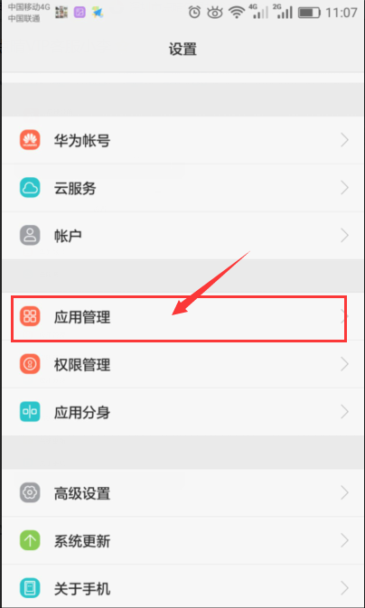 2.1、打開設置——選擇應用管理,如下圖所示: