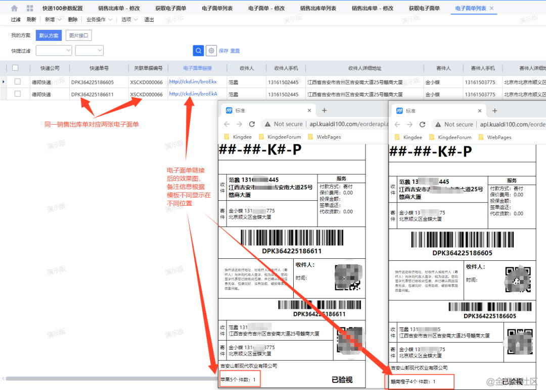 金蝶云星空領域的銷售模塊集成了快遞100對接功能,默認適用于銷售訂單,發貨通知單,銷售出庫單和銷售退貨單(下文將這四種單據引用為銷售單據)。通常客戶一般是用一張銷售單據去申請一次快遞100電子面單,這樣就能保證一張銷售單據有一個快遞100單號的回填,即通常銷售單據上的物流跟蹤頁簽中有且僅有一個物流單號,如下圖1-1所示...