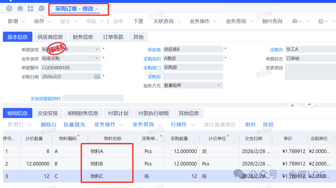 Q問題描述采購訂單有三行物料,可以作廢或刪除其中一行嗎?學完本篇文章,您將學會:①訂單作廢按鈕的生效范圍②已審核沒有下游的刪除方式③已審核且有下游的刪除方式?