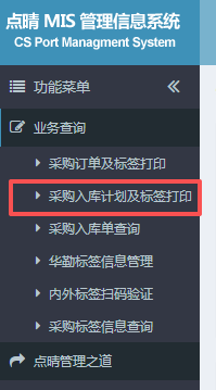 操作步驟:倉庫管理——物料入庫管理——采購入庫管理——采購入庫單管理;進入頁面如下圖所示:?在此頁面可進行采購入庫記錄查詢,標簽打印,以及單據打印。