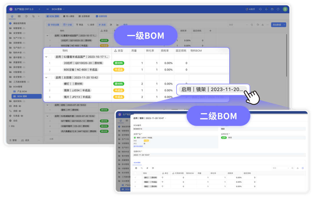 在現(xiàn)代制造業(yè)中,物料清單(BOM)扮演著至關(guān)重要的角色,它是英文BillOfMeterials的縮寫,意味著材料清單。它不僅是產(chǎn)品設(shè)計(jì)和生產(chǎn)的基礎(chǔ),還能幫助企業(yè)有效管理供應(yīng)鏈、控制成本,提高生產(chǎn)效率。如果說把ERP系統(tǒng)比作一座“小房子”,那BOM表的作用可以說是“基石”。?什么是BOM?