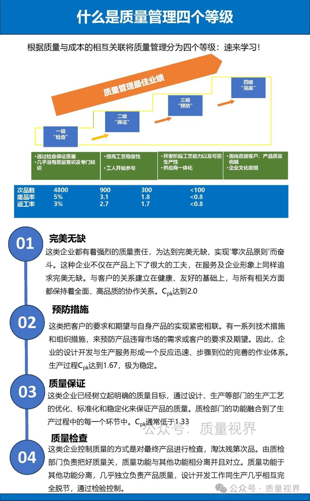 在當(dāng)今競(jìng)爭(zhēng)激烈、市場(chǎng)環(huán)境瞬息萬變的商業(yè)版圖中,產(chǎn)品與服務(wù)質(zhì)量宛如企業(yè)的生命線,牢牢把控著企業(yè)興衰存亡的命脈。而處于質(zhì)量管理核心位置的質(zhì)量人,肩負(fù)著保障質(zhì)量水準(zhǔn)、推動(dòng)質(zhì)量提升的重任,在這場(chǎng)質(zhì)量捍衛(wèi)戰(zhàn)里,系統(tǒng)思維成為其不可或缺的“秘密武器”。本文介紹質(zhì)量管理4個(gè)等級(jí)、7大原則、10個(gè)基本思維方式、12個(gè)步驟、15個(gè)基本原理...