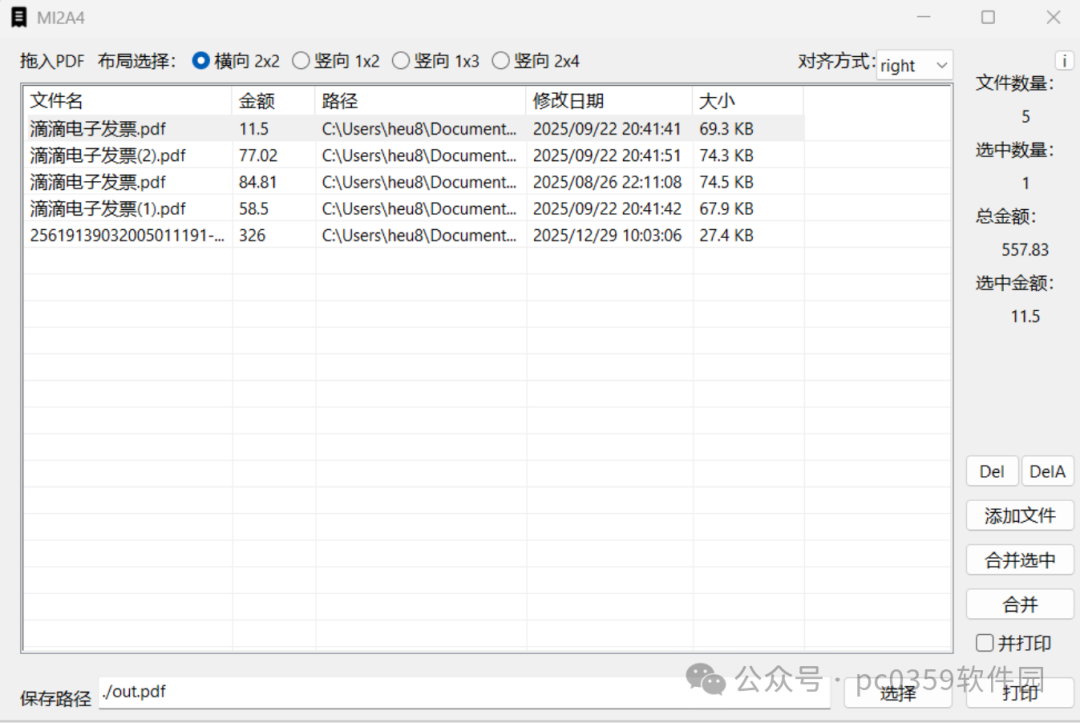 [點晴永久免費OA]PDF發票批量合并打印工具