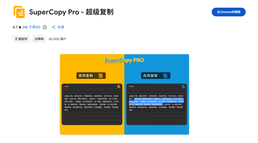 1.supercopy是不是經常遇到很多網站不允許你復制的情況。?直接打開這款插件,就可以一鍵接觸禁止復制,幾乎所有網站都能用。2.ublockorigin這是個神奇的網頁去廣告神器,除了常規的網頁,搜索引擎的廣告能去除。它還可以去除常見的電影電視劇的視頻平臺里的廣告。3.globalspeed這是一個視頻加速插件,你...