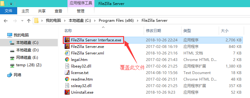 FileZilla Server的配置教程: 1、FileZilla Server完成安裝后,將下載到的安裝文件中的中文補丁解壓到FileZilla Server的安裝目錄,覆蓋同名文件,完成軟件的中文漢化處理。