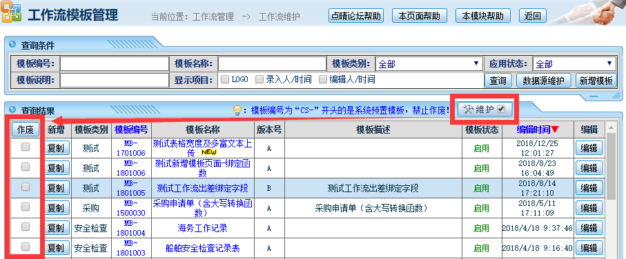一、工作流模板只有管理員才能看到,普通用戶看不到,不用特別考慮暫時禁用問題。工作流模板就算沒用了,也不允許徹底刪除,只能作廢,因為該模板有可能被以前的申請單使用,徹底刪除的話,會導致系統邏輯錯誤。